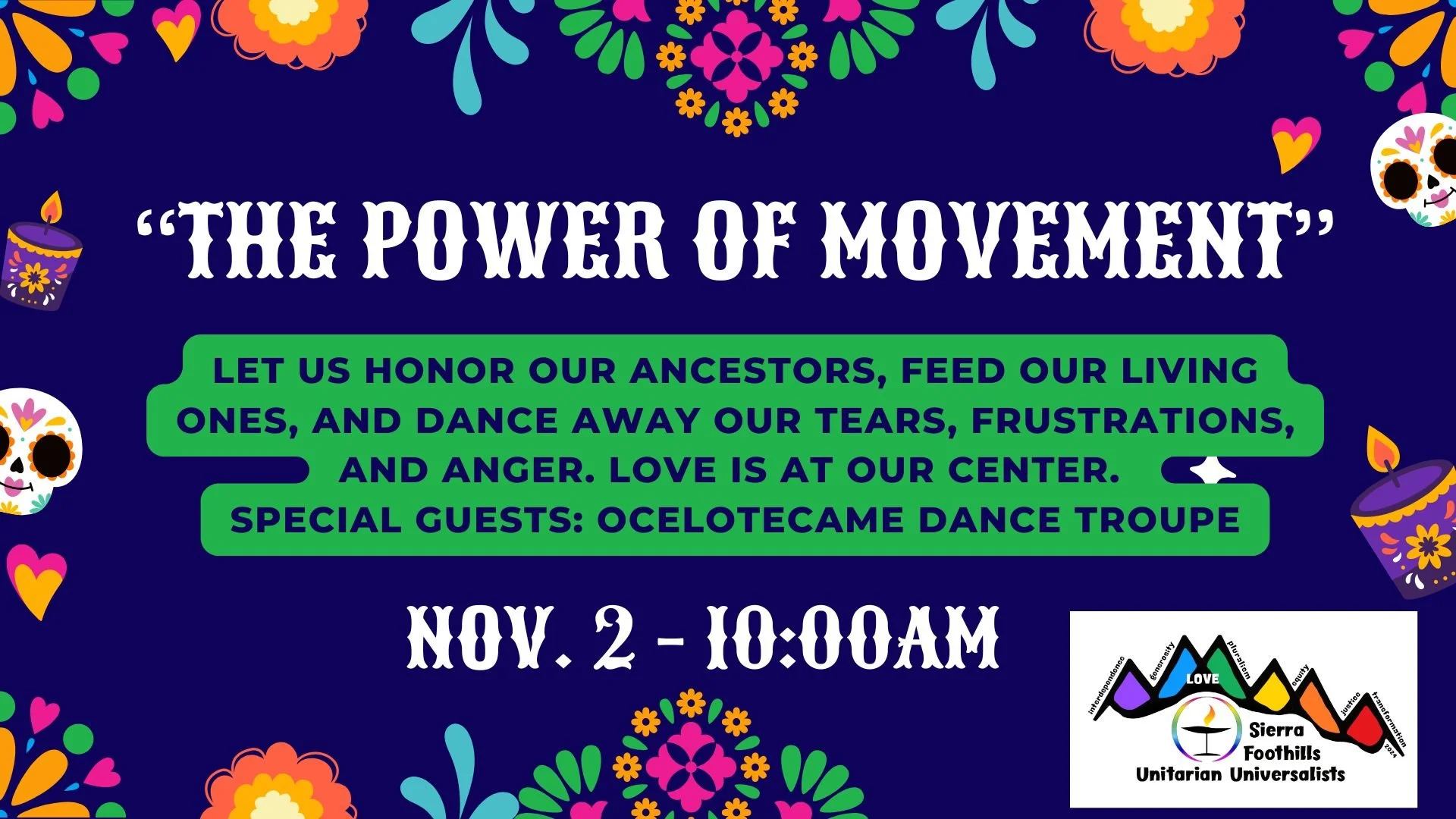 Rev. Sangye Hawke, John Bowman, and special guests: Ocelotecame Dance Troupe