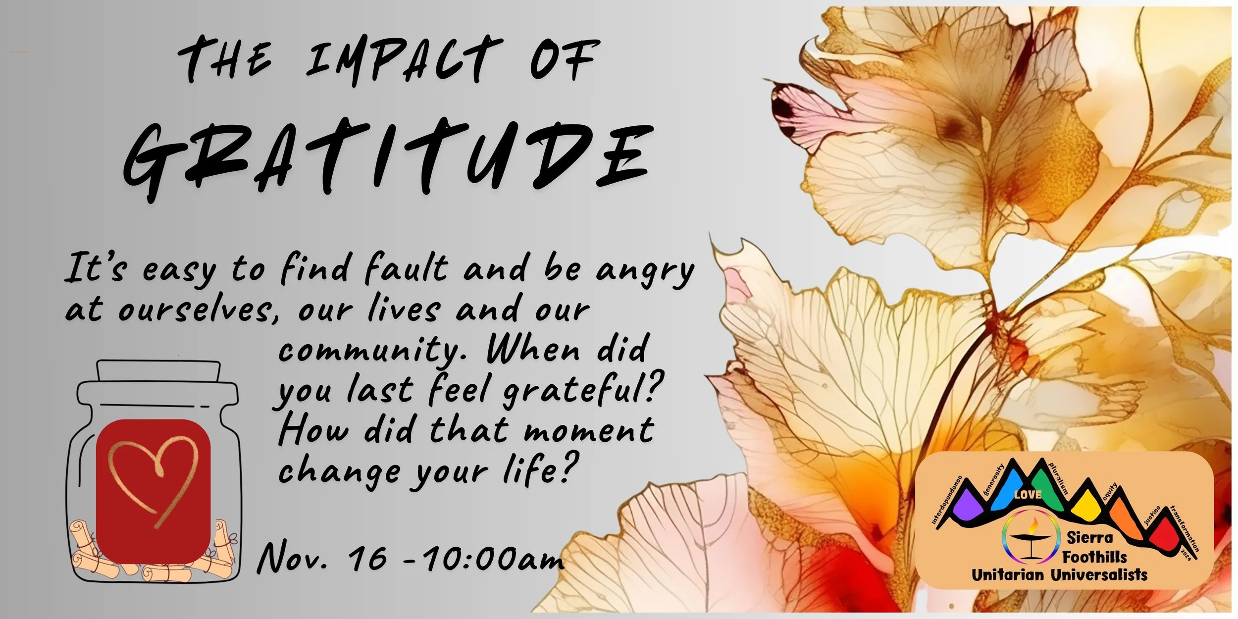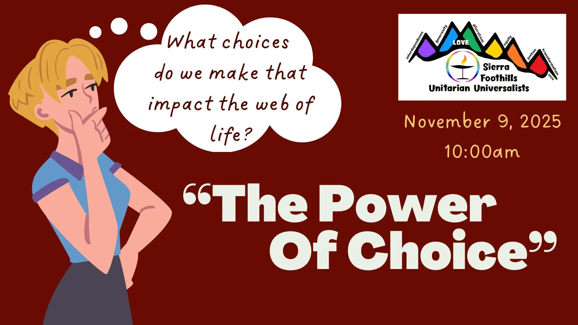 It is important in life to create balance between self and others, needs and wants. Join us as we explore how our UU faith supports us in maintaining physical and spiritual balance.